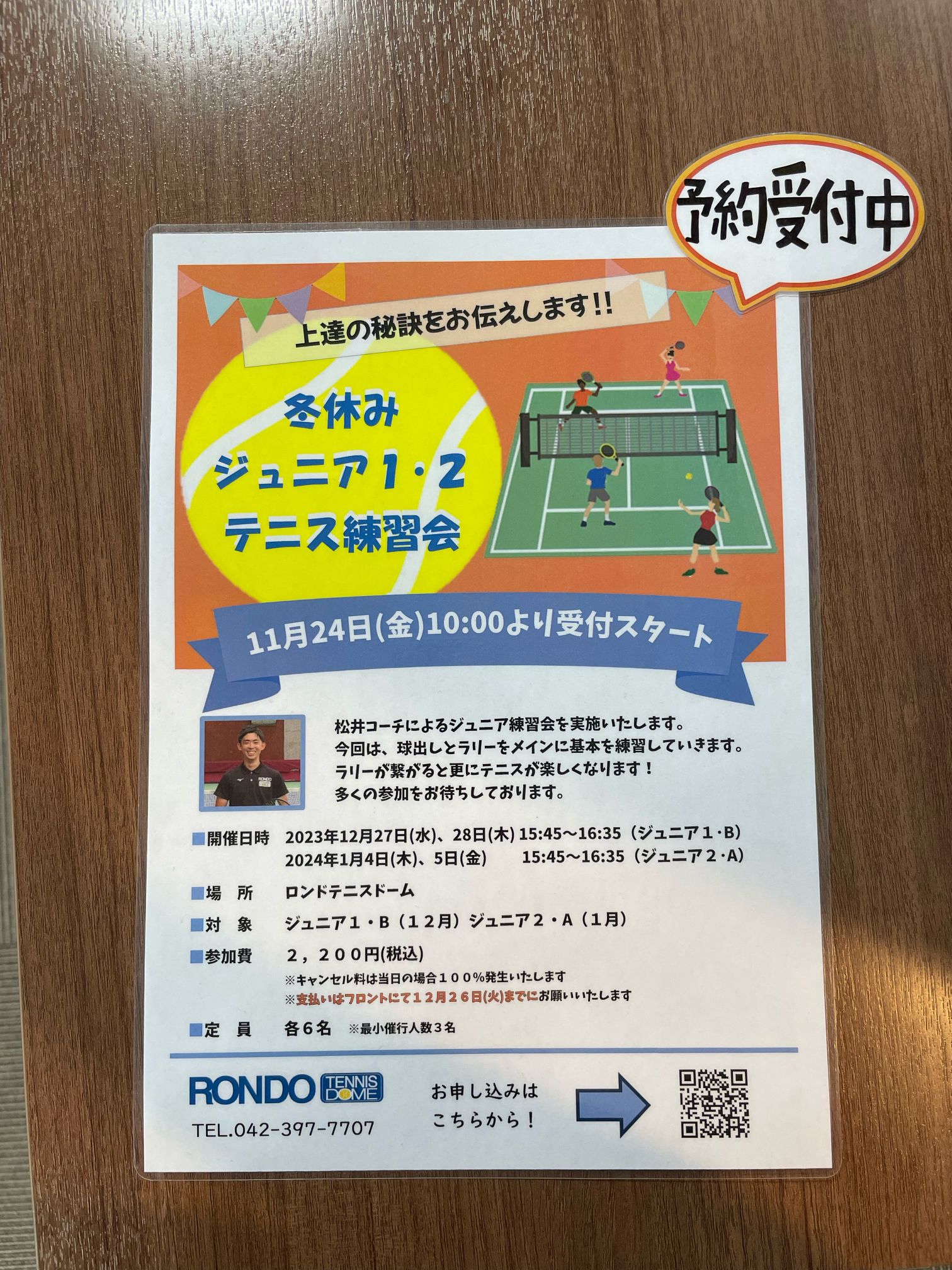 さて、イベントというとテニスドームではジュニア向けの冬休み練習会を実施します🎾