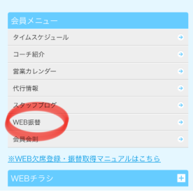 (パソコンからは、会員メニュー・WEB振替からとなります)