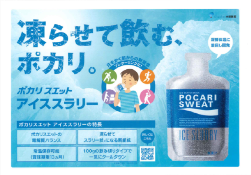 (スラリー状とは、細かい氷の粒子が液体に分散した状態の飲料で、
